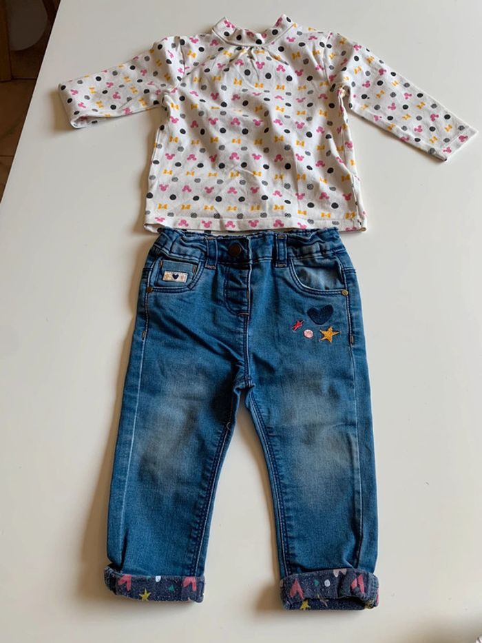 1 jean orchestra 1 teeshirt Disney très bon état taille 9 mois