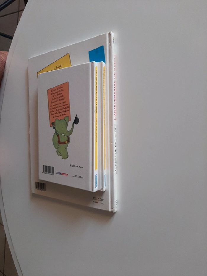 Lot 3 albums Babar. -L'anniversaire de Babar -Le voyage de Babar -Babar et le professeur Grifaton Les pages du plus grand album ont été scotchées. Bien regarder si l'état des livres vous convient !