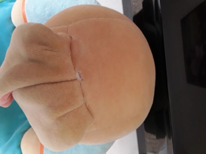 En très bon état hormis une petite tâche devant et dessous, et une couture défaite derrière les oreilles que je ne sais pas raccomoder.