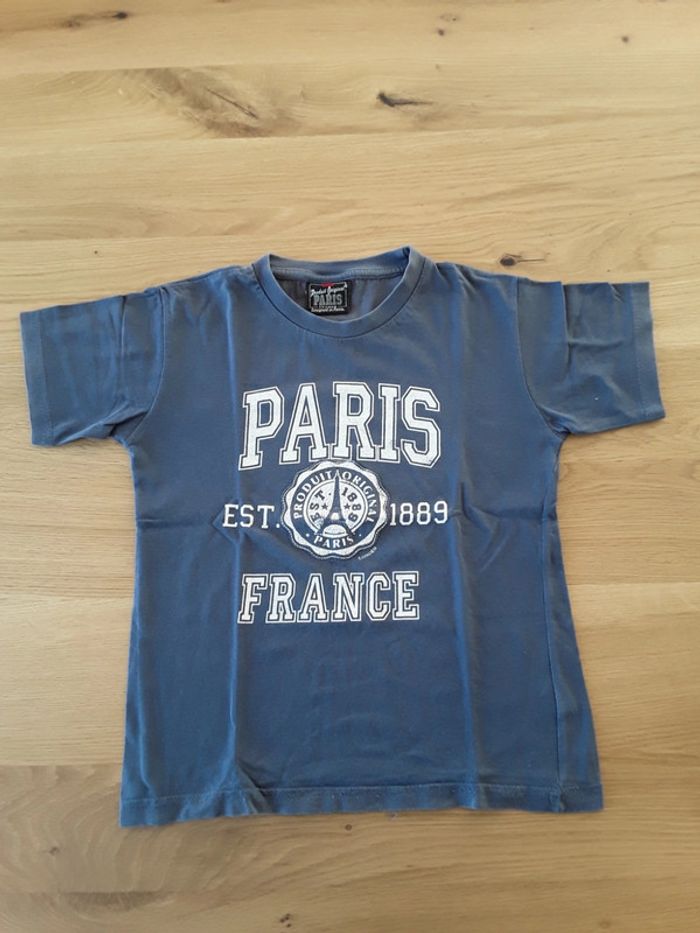 Tee shirt en bon état Le Paris est un peu fané mais aucun trous ni tâches Le rayé bleu à un petit accroc, marqué decathlon Le rouge rien à signaler, marqué decathlon