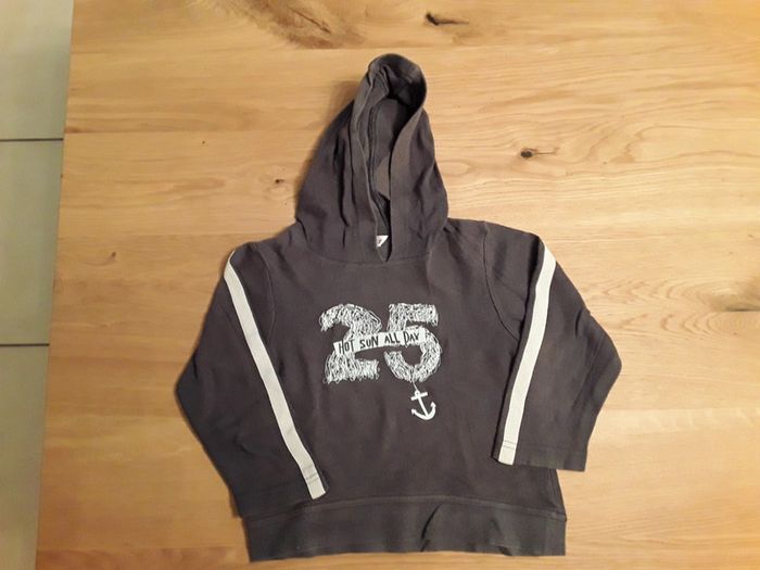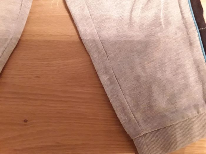Jogging en bon état, un peu fané pour le bleu et un toute petite tâche sur le gris (cf photo 4)