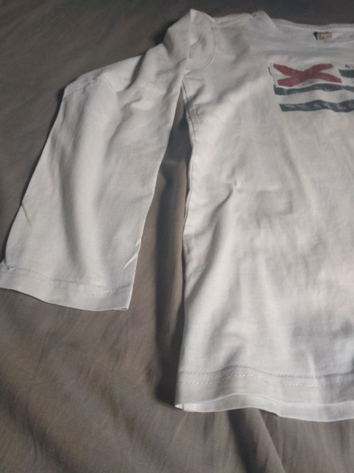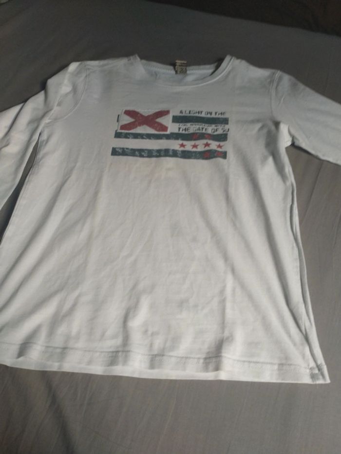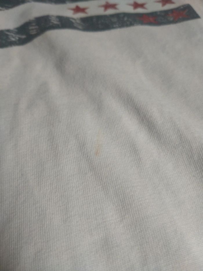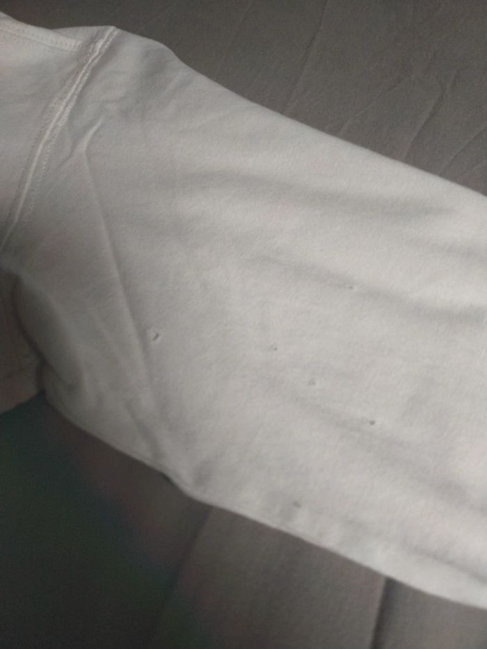 Bon état général, tee-shirt manches longues. Taches légère devant et derrière, trous sur la manche gauche (voir les 4 dernières photos).