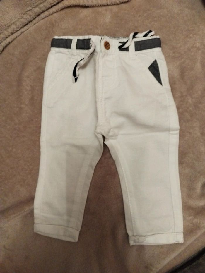 Ensemble été pantalon en toile blanc très peu porté très bon état et polo bleu marine également en très bon état.