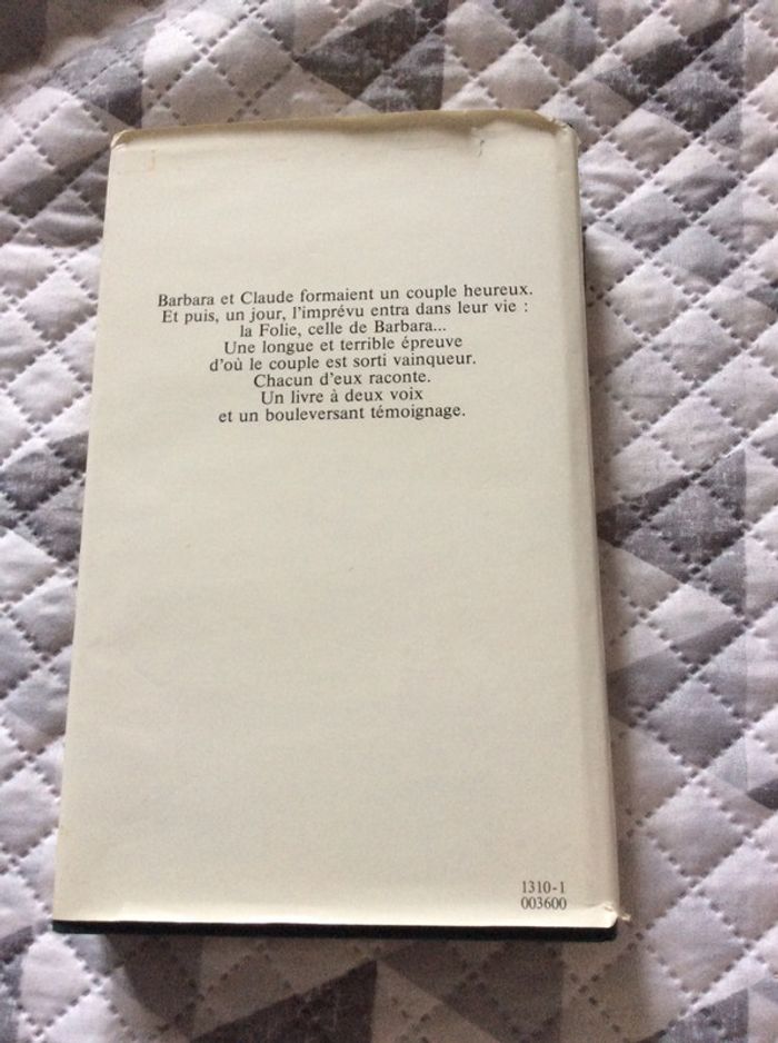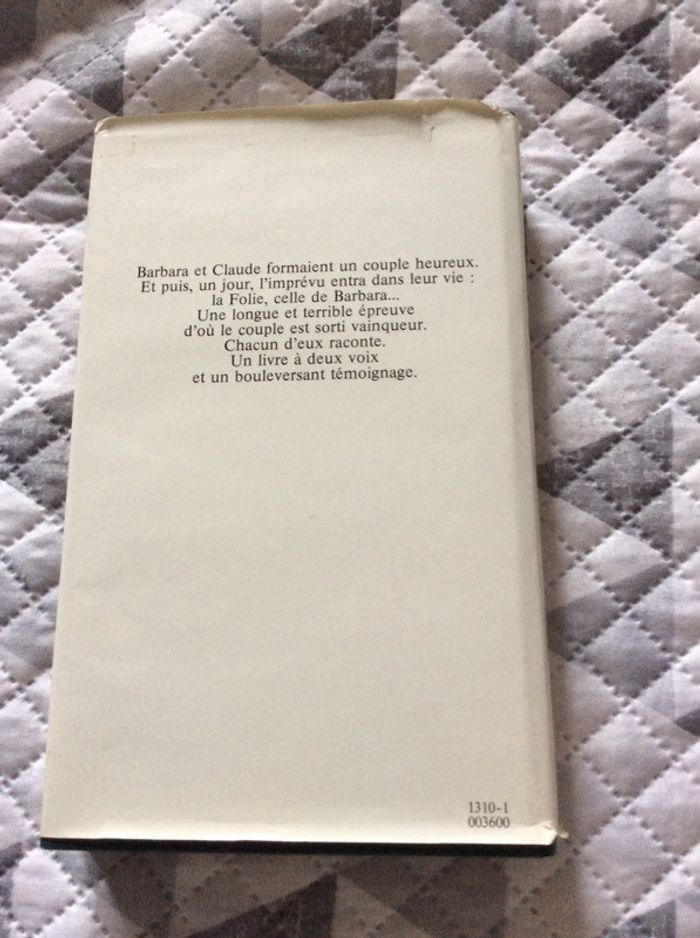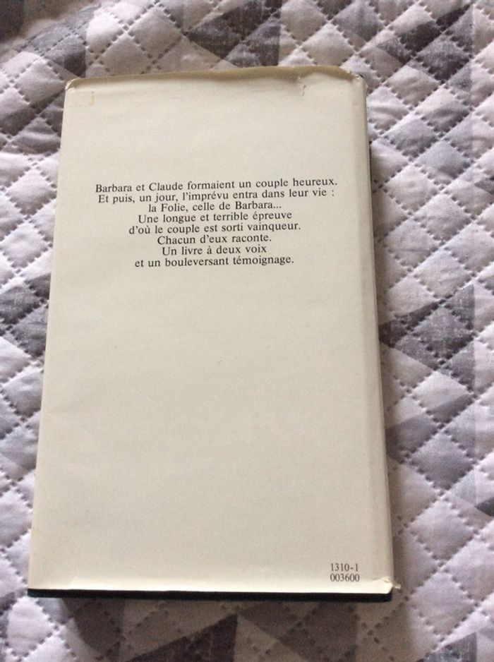 ls sont deux. Barbara et Claude. Ils étaient heureux. Un jour, Barbara s'est écartée du réel, tour à tour plongée dans le gouffre d'une panique sans raison, et soulevée par la vague d'un enthousiasme sans mesure. jaquette un peu abîmée mais livre nickel