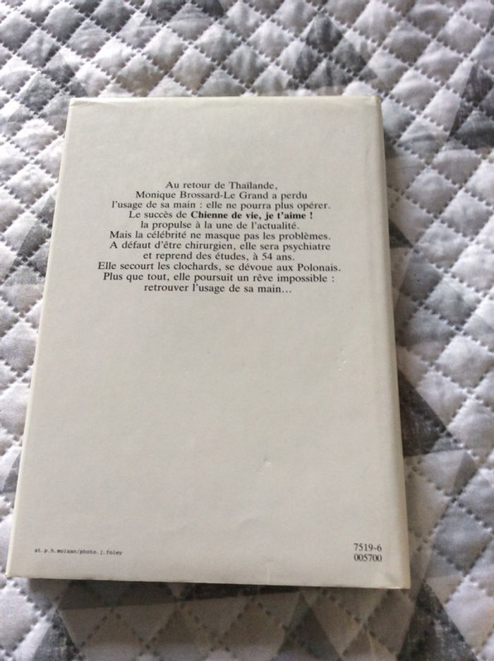 Au retour de Thaïlande où elle a soigné les réfugiés, Monique Brossard-Le Grand a perdu l'usage de sa main. Quand on lui annonce qu'elle ne pourra plus opérer, c'est sa raison de vivre qui s'effondre