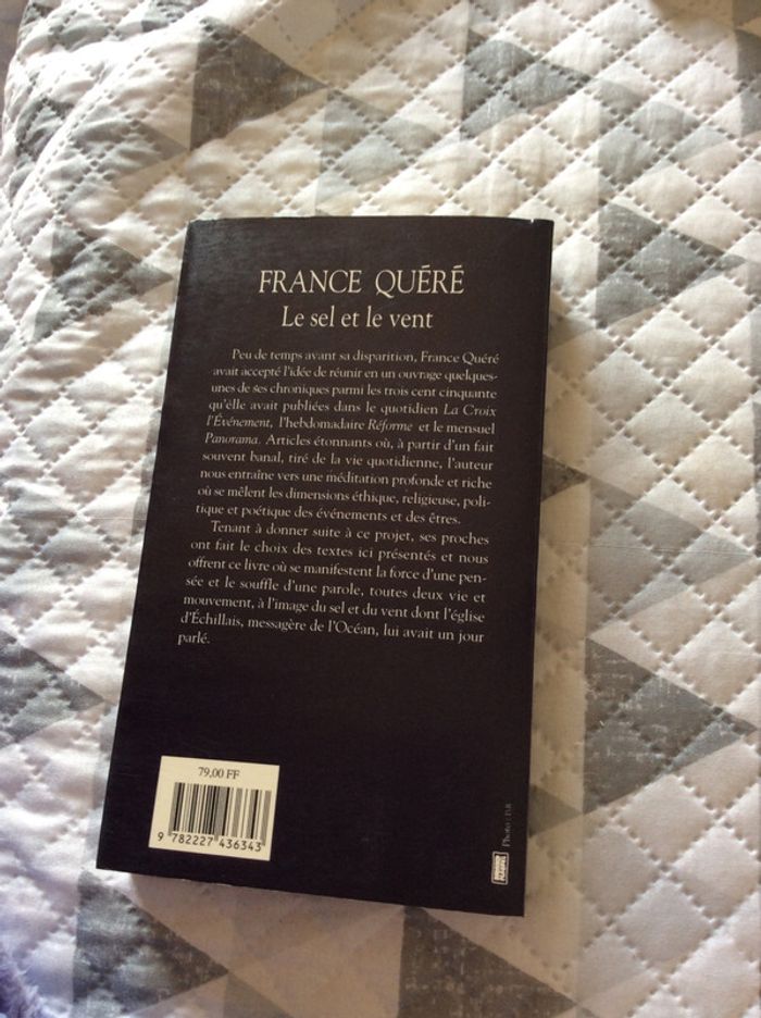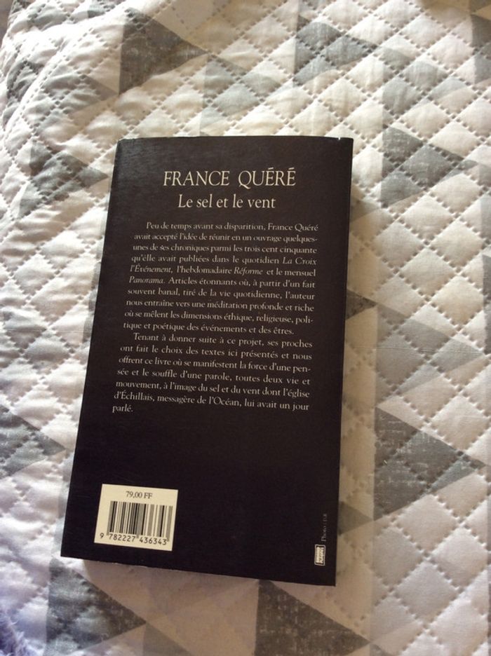 temps avant sa disparition, France Quéré avait accepté l'idée de réunir en un ouvrage quelques-unes de ses chroniques parmi les trois cent cinquante qu'elle avait publiées dans le quotidien La Croix l'Evénement, l'hebdomadaire Réforme et le mensuel Panorama. Articles étonnants où, à partir d'un fait souvent banal, tiré de la vie quotidienne, l'auteur nous entraîne vers une méditation profonde et riche où se mêlent les dimensions éthique, religieuse, politique et poétique des événements et des êtres. Tenant à donner suite à ce projet, ses proches ont fait le choix des textes ici présentés et nous offrent ce livre où se manifestent la force d'une pensée et le souffle d'une parole, toutes deux vie et mouvement, à l'image du sel et du vent dont l'église d'Echillais, messagère de l'Océan, lui avait un jour parlé.