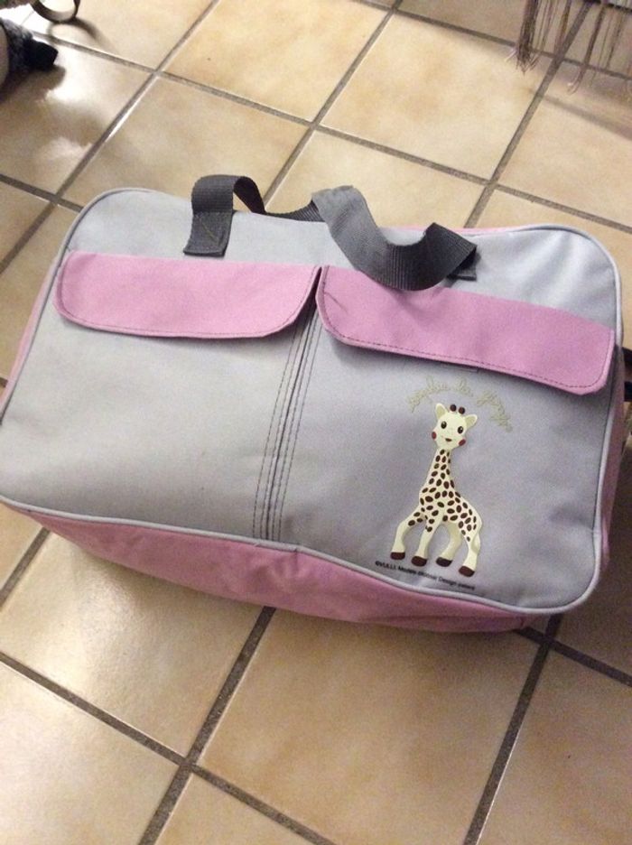 rose et gris , motif girafe devant, 2 poches Velcro devant, bandoulière réglables