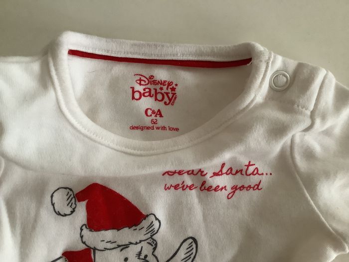 Body manches longues de la marque C&A Blanc avec Winnie l’ourson et Porcinet Motif Noël Pour bébé 62 cm. Très peu porté . État neuf.