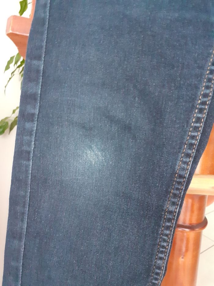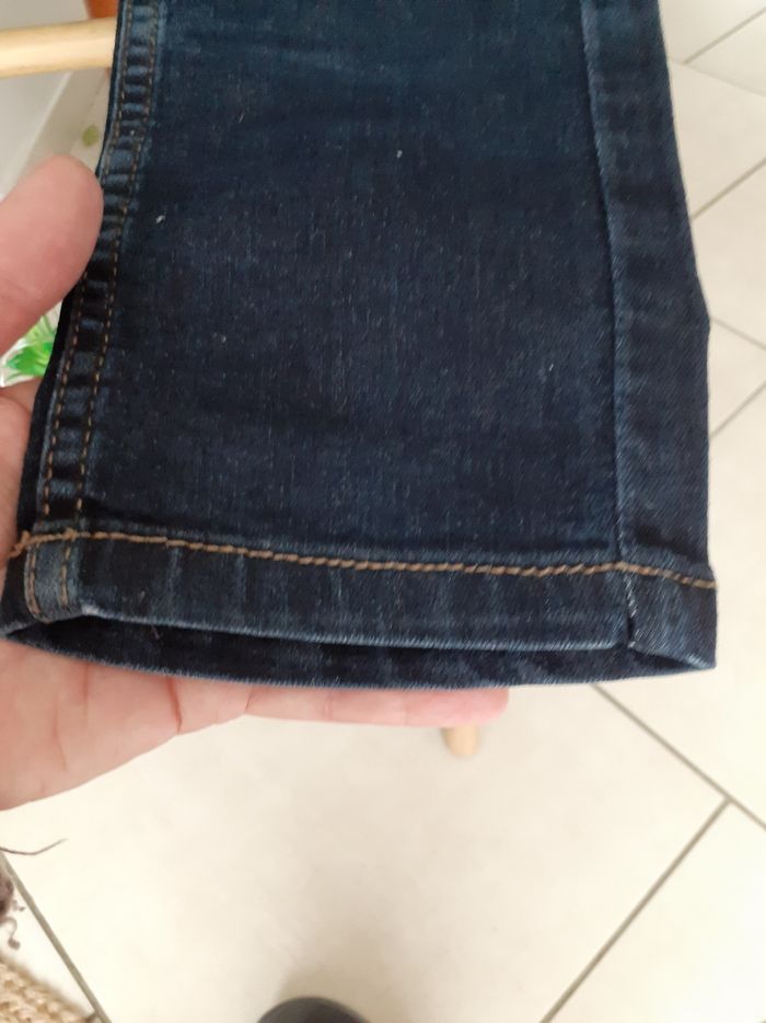 En très bon état ni trous ni tâches mais une toutz légère trace d usures sur la jambe droite et entre les 2 fesses. Taille réglable.