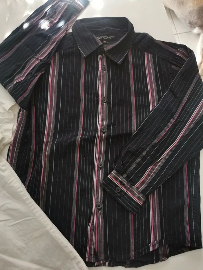 10 ans La blanche Kiabi manches courtes : attention elle présente des tâches sur le Devant et elle a jauni avec le temps. La noire Overgame manches longues en très bon etat 10A05