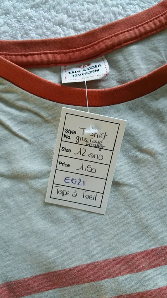 T shirt tape à l'oeil 12 ans Gris orange pâle En bon état mais la couleur est un peu passée.
