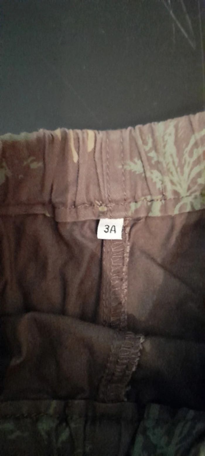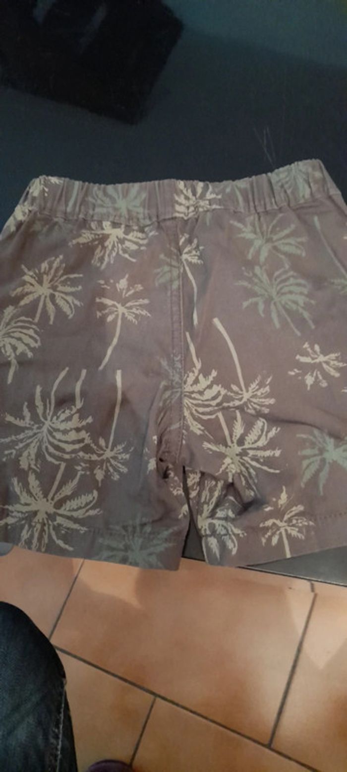 Short kaki avec motif dans les même tons. Taille grand,noter 3 ans mais plutôt 4/5 ans. Jamais mis par mon fils car fin juste laver
