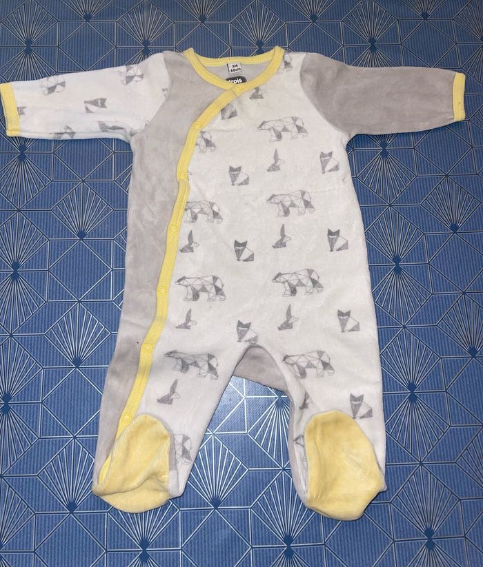 Lots 3 pyjamas velours Marque Trois Kilos Sept 3 mois (60cm) Bon état