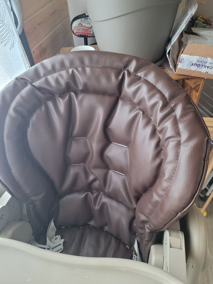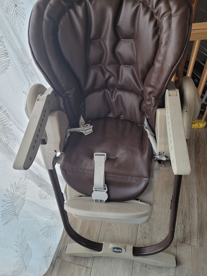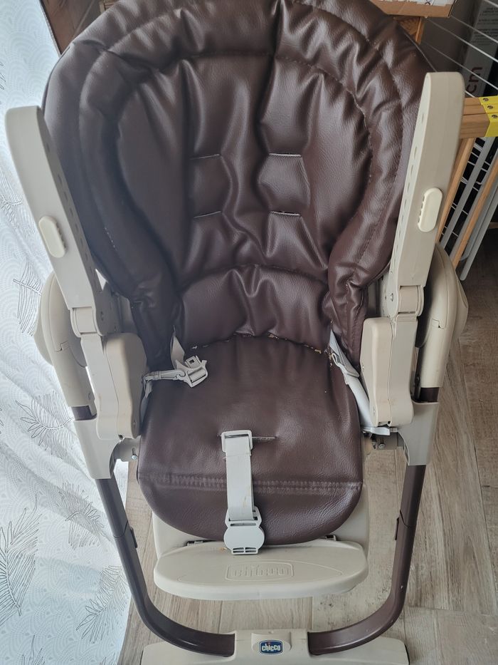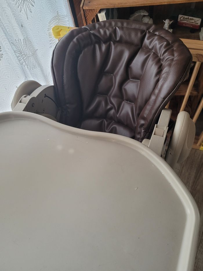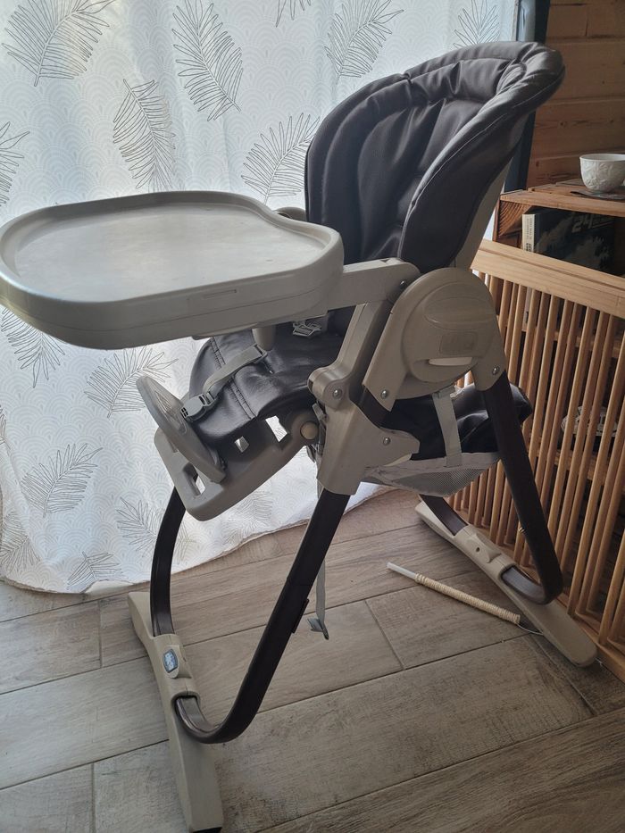Chaise haute réglable en hauteur, tavle réglable, sangle (derrière housse car enlever pr laver) réducteur bébé, plusieurs positions... Tous mes prix sont negociable