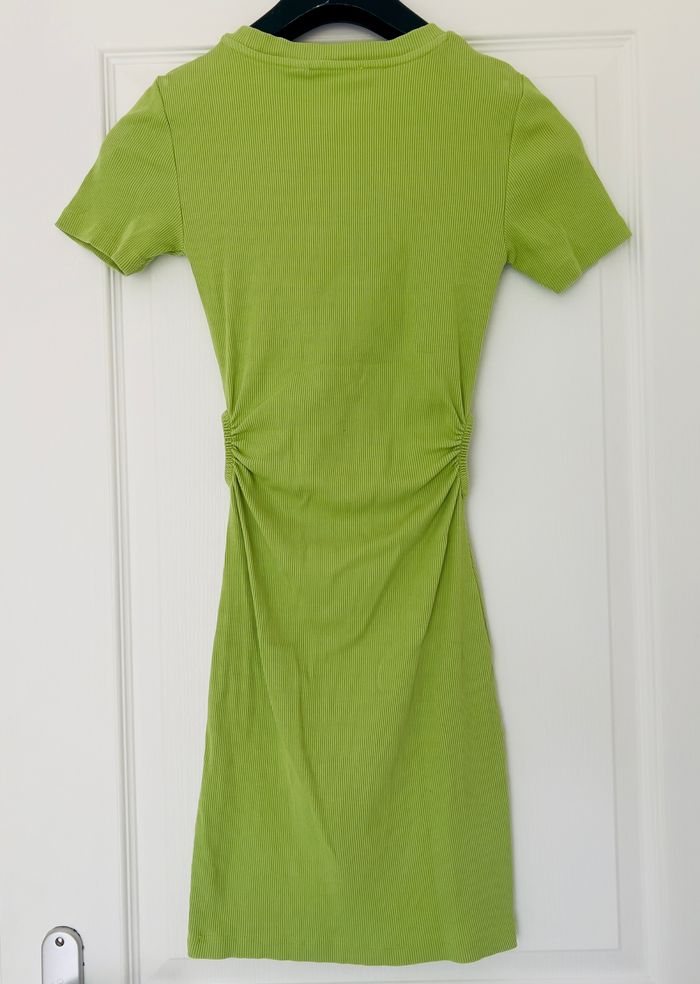 Robe de couleur verte pomme, petites ouvertures sur les côtés, manches courtes. En parfait état, aucune tâche ni trou. Très peu portée. En coton et elasthanne. Taille 12 ans/XXS, marque Pimkie. Envoi rapide et soigné, réduction automatique dès 2 articles sélectionnés. Mes autres ventes de cette taille ici: #12ansfilleugolola #12ansfille #fille12ans #pimkiexxs #robexxs #xxsfille #robe12ans