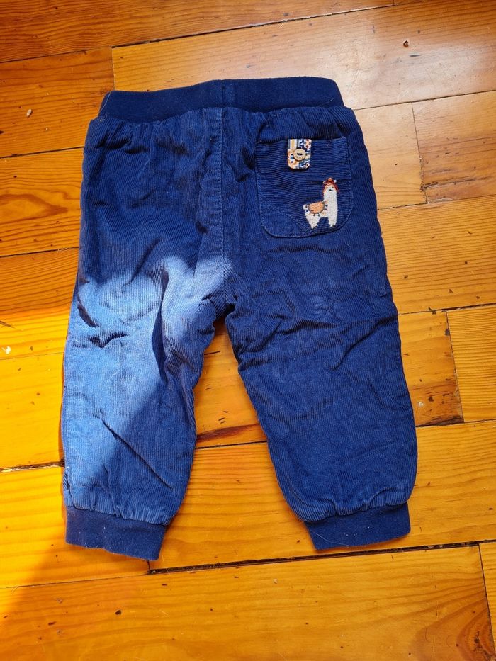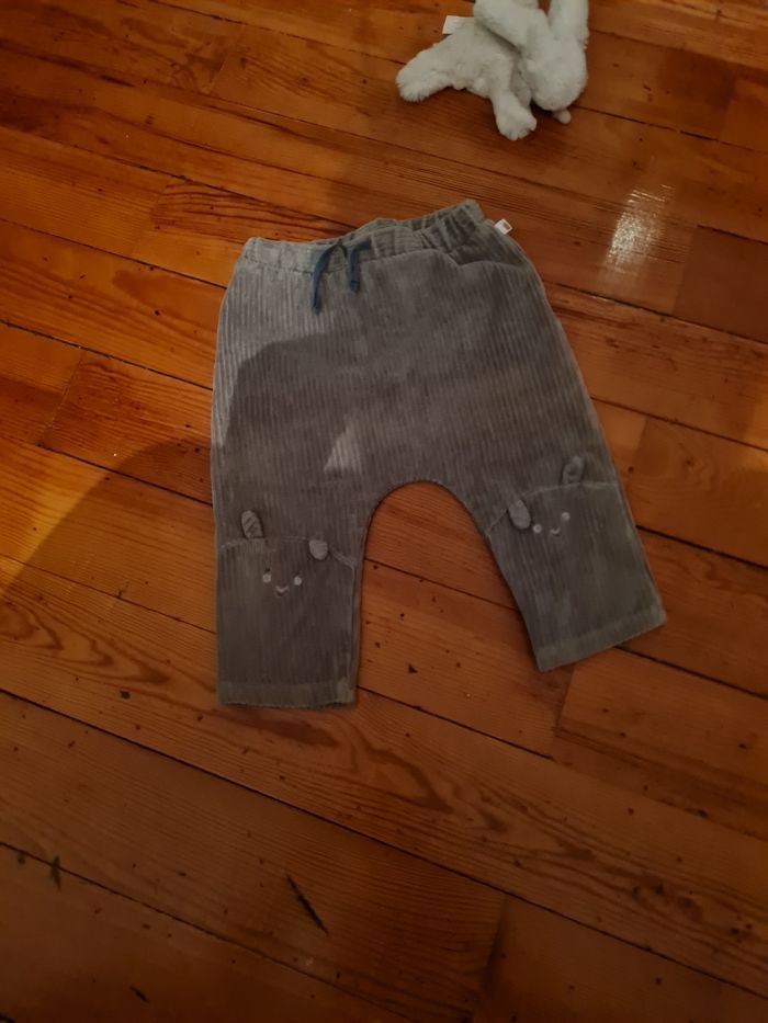 3 pantalons 12 mois, ils ont été porté mais sont en très bon état. Pantalons bleu velours tiens chaud parfait pour l'hiver sergent major Pantalons kaki avec oreilles de lapin 🐰 sergent major Jogging jaune tao