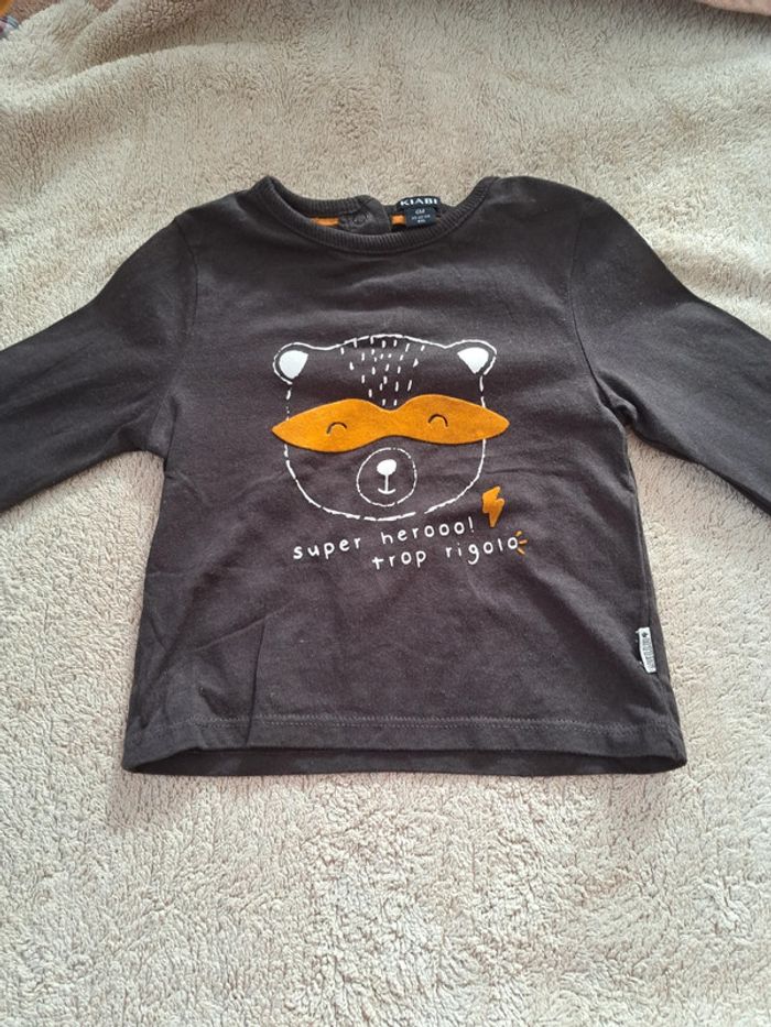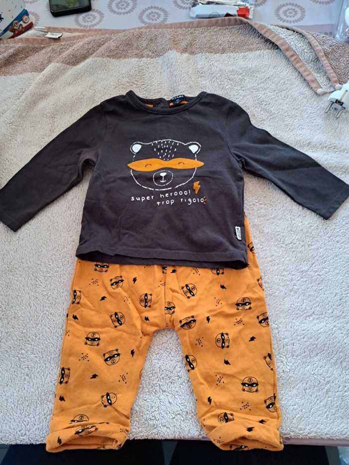 Excellente état. T shirt manche longue et pantalon 6mois Kiabi