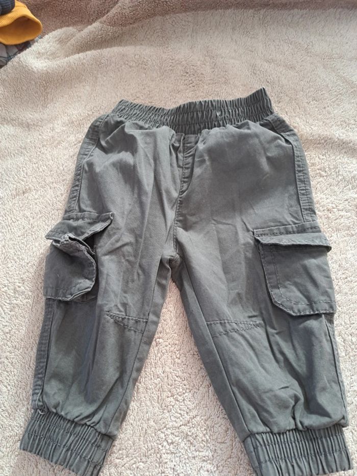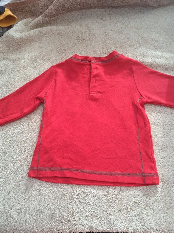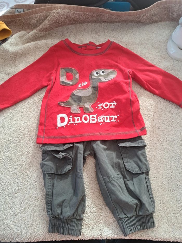 Très bon état, ensemble pull et pantalon avec chaussettes assortie. Juste la poche du pantalon qui s'est déchiré, juste à recoudre ( je ne l'ais pas fait car je ne suis pas douée) 6 mois