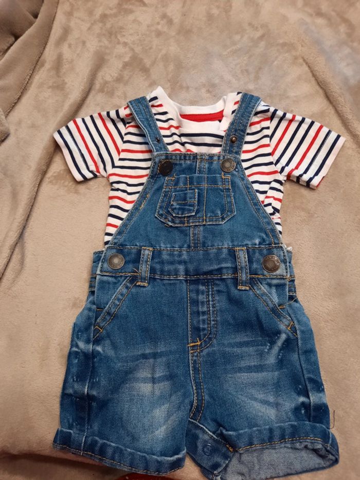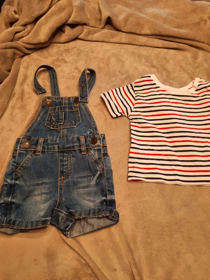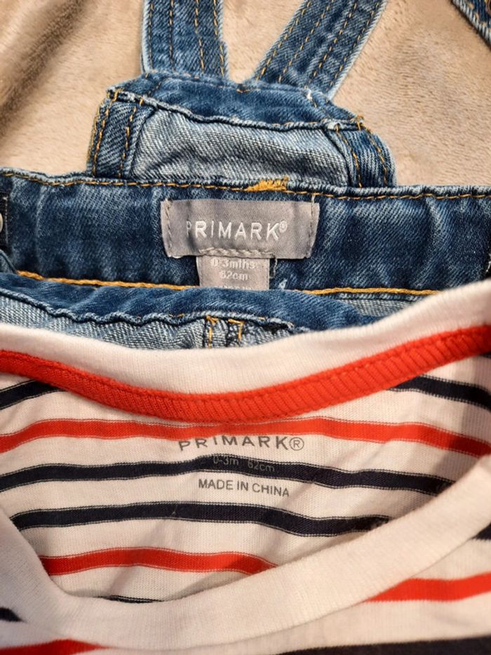 Excellent état, salopette, t-shirt de taille 3 mois. Primark
