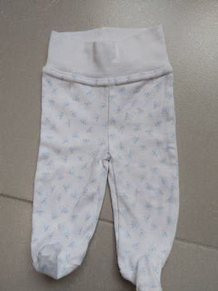 Pantalon fin avec pied Couleur blanc et dessin bleu Taille 1 mois Peu porté