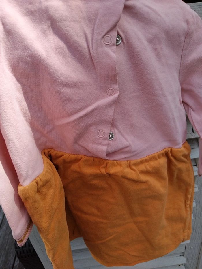 Rose tendre et oranger pour cette robe 100% coton 71cm #9moisfille #9moisfillegaia