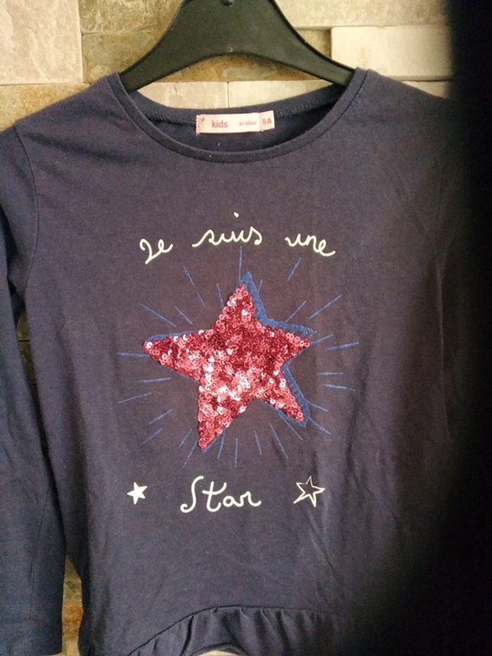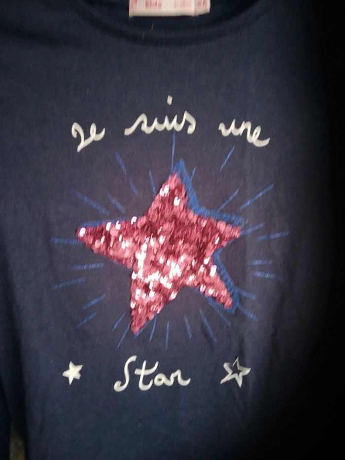 T shirt marine Gémo étoile paillettes bien porté mais encore très sympa #fille8ansgaia