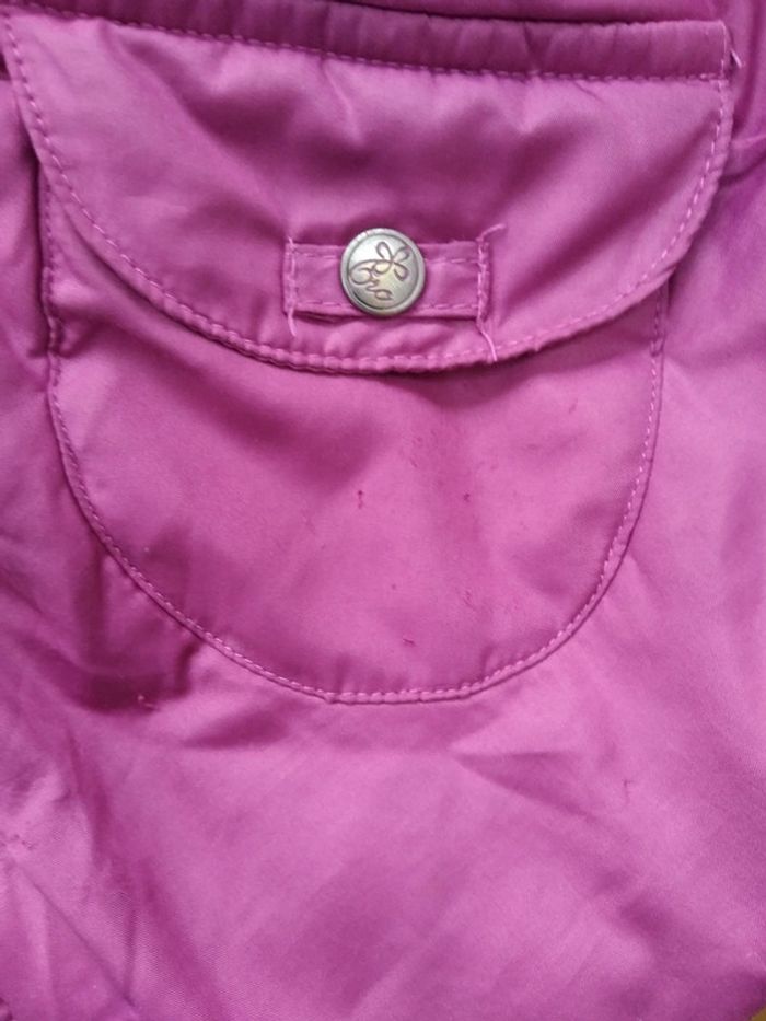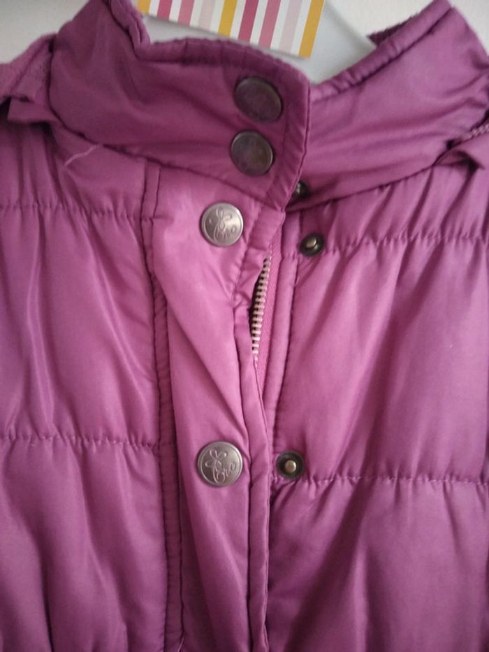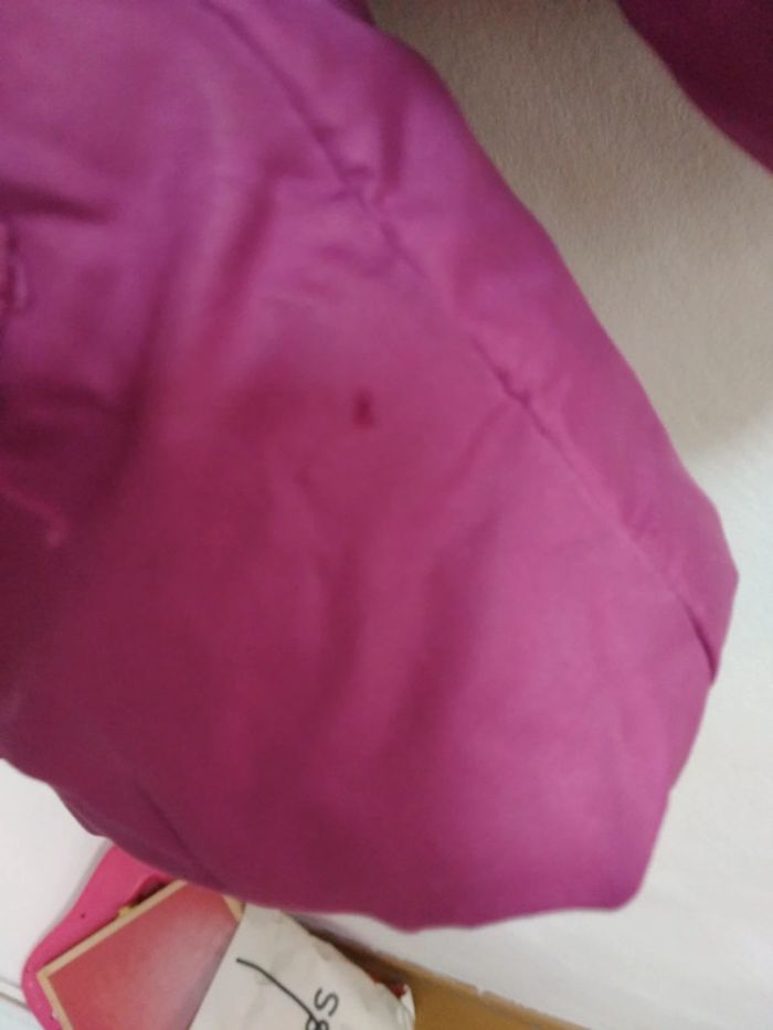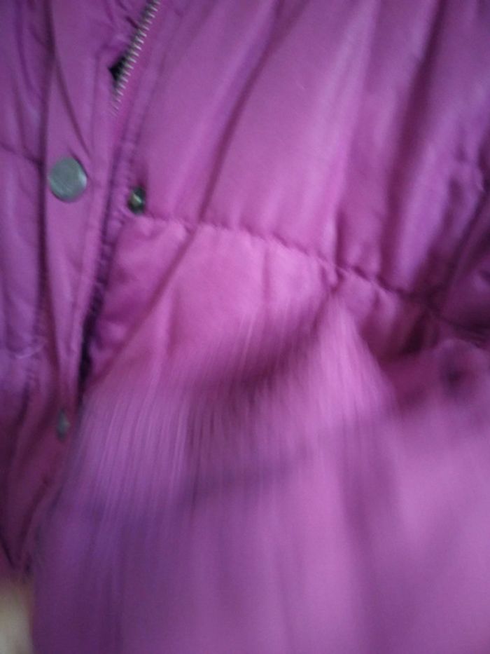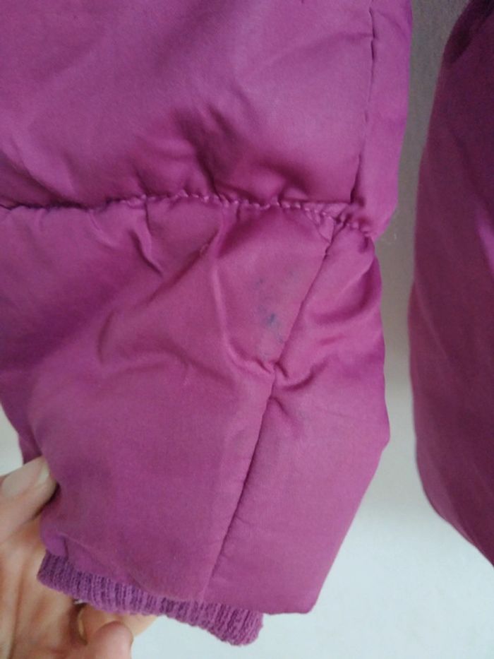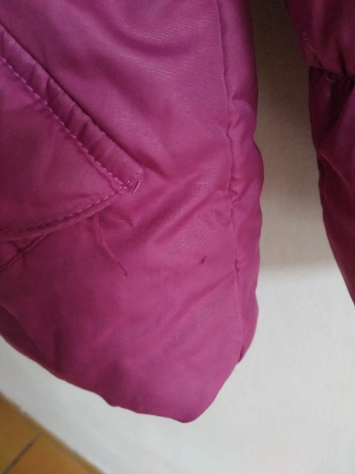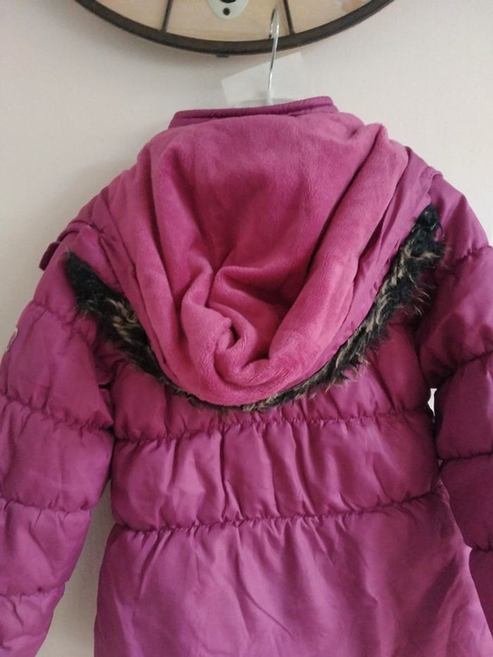 Intérieur doux fourré sauf manches, matière style doudoune capuche amovible chaude .je note une tâche et un petit accroc sur une des manches et niveau poche (voir photo en zoom)mais l'ensemble est en tbe.un 5/6ans #manteaugaia #fille5ansgaia #fille6ansgaia