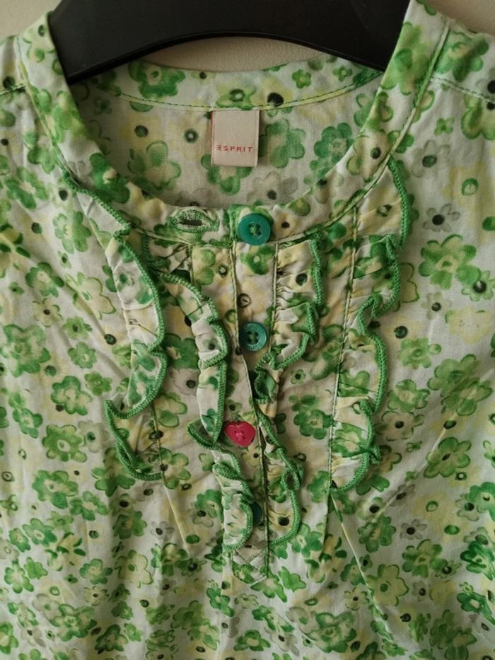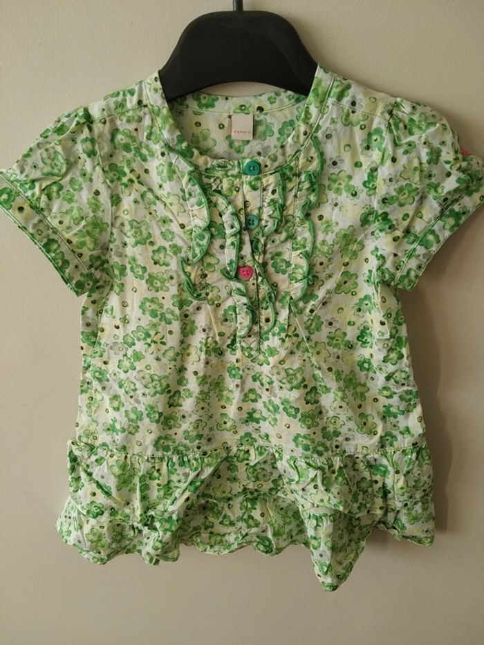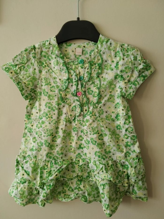 Jolie blouse verte fleurie peu portée (photo 1 j'ai tenté de modifier la luminosité pour que le vert soit fidèle à la réalité) #6moisfille #6moisfillegaia