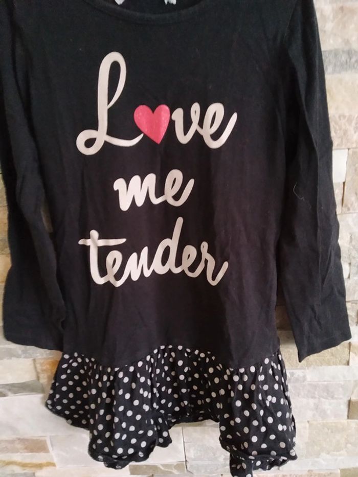Robe courte ou tunique motifs pois vers le bas inscription paillettes cœur. Je mets bon état car je note une "tâche" de colle pailletée sur la manche c'est minime.il manque étiquette de taille et marque. #fille5ansgaia #fille5ans #mamansolidaire