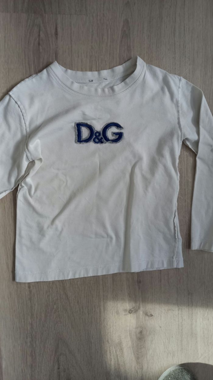 Portés mais restent en bon état Top manches longues. Gris foncé. Inscriptions blanches. Okaidi Top manches longues. Blanc. Inscriptions bleues. D&G.