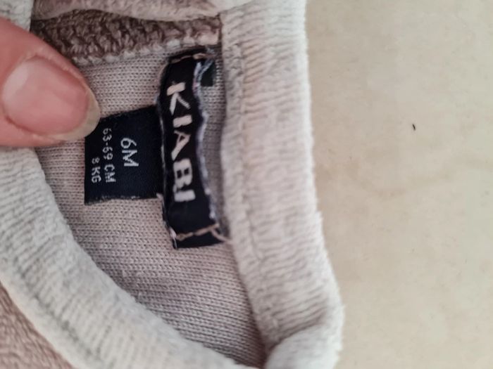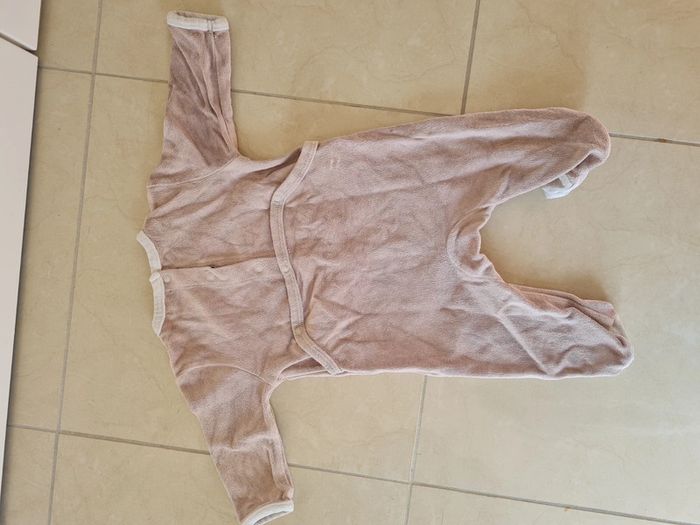 Pyjama mixte dans le marron clair en 6 mois bon état. N'hésitez pas à faire un lot j'ai plusieurs 6 mois tout n'est pas en vente .
