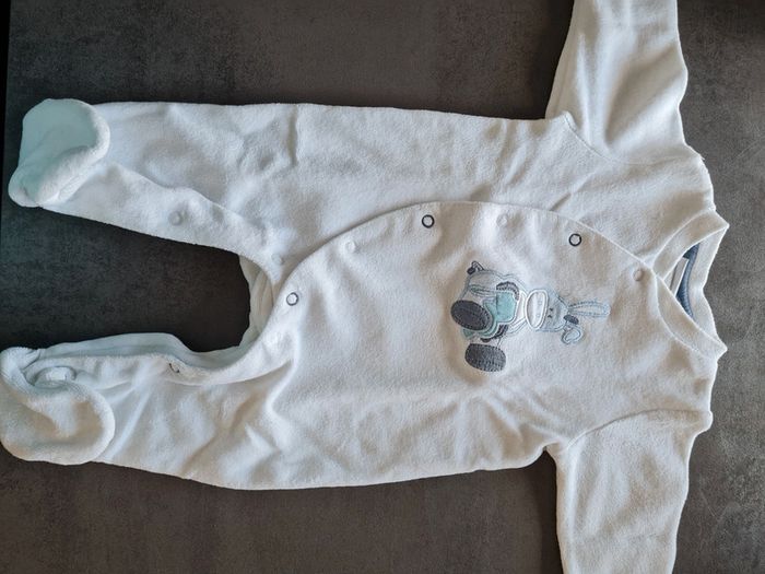Pyjama mixte 3 mois de marque noukies en 3 bon état j'en ai 2 même. N'hésitez pas à faire un lot j'ai plusieurs vêtements en 1mois et 3mois.