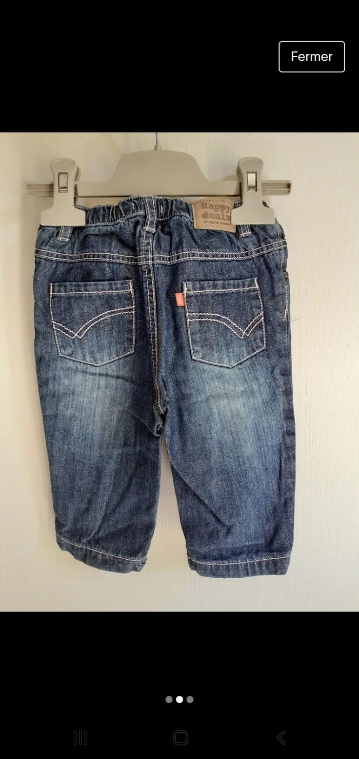 Un pantalon en jean pour l’hiver, taille 6 mois. Porté par un seul enfant, excellent état.