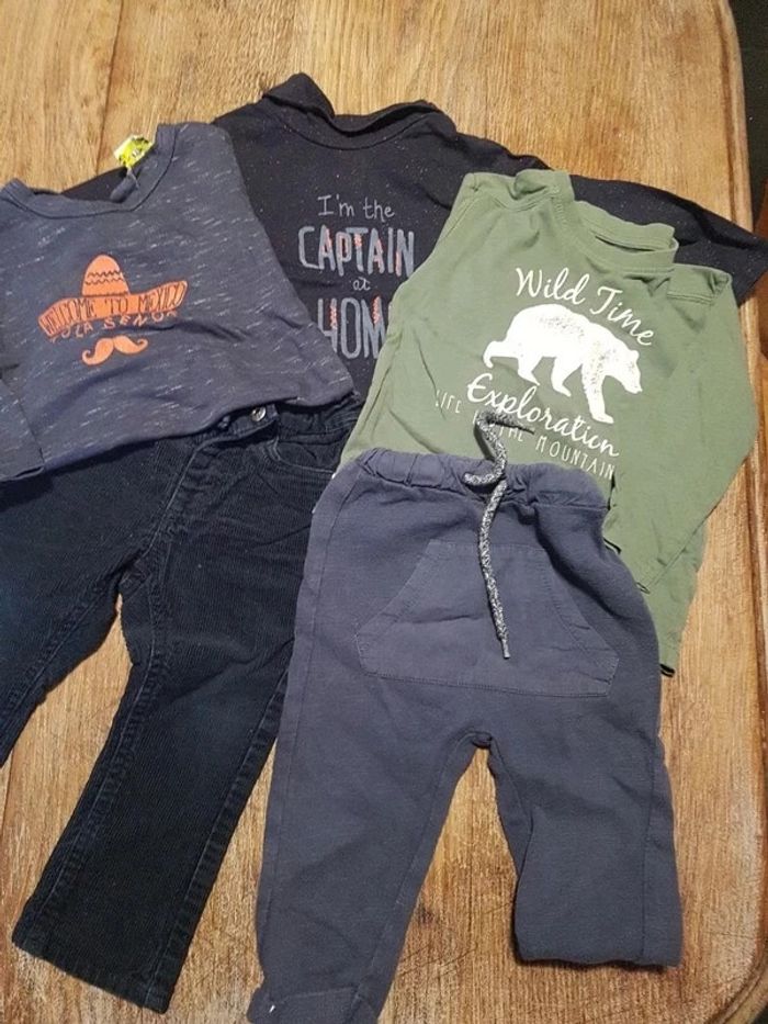 En très bon état pas de défaut à signaler comprends : 2 pantalon un velour kiabi 1tao 3 tshirt ML 2tao et 1 verbaudet