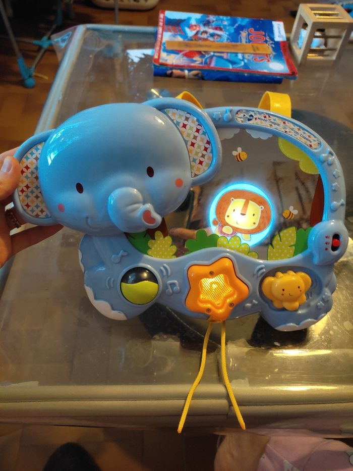 Jeux de parc ou de lit chante , plusieurs chansons étoile a emboîté roue ... . En très bonne état juste quelque marque sur le miroir