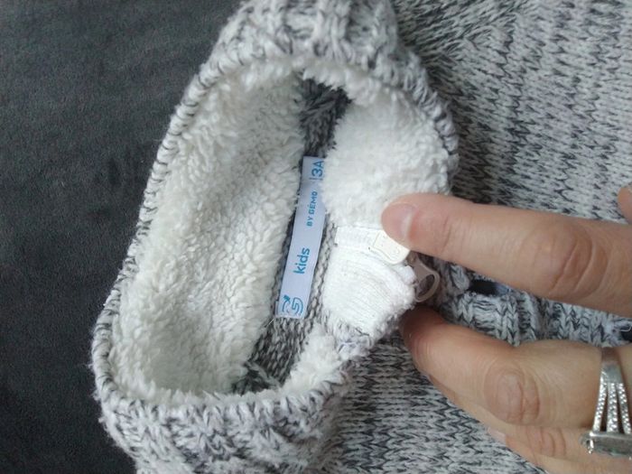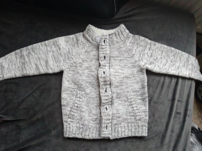 Gilet gris chiné taille 3 ans se ferme avec une tirette et des boutons