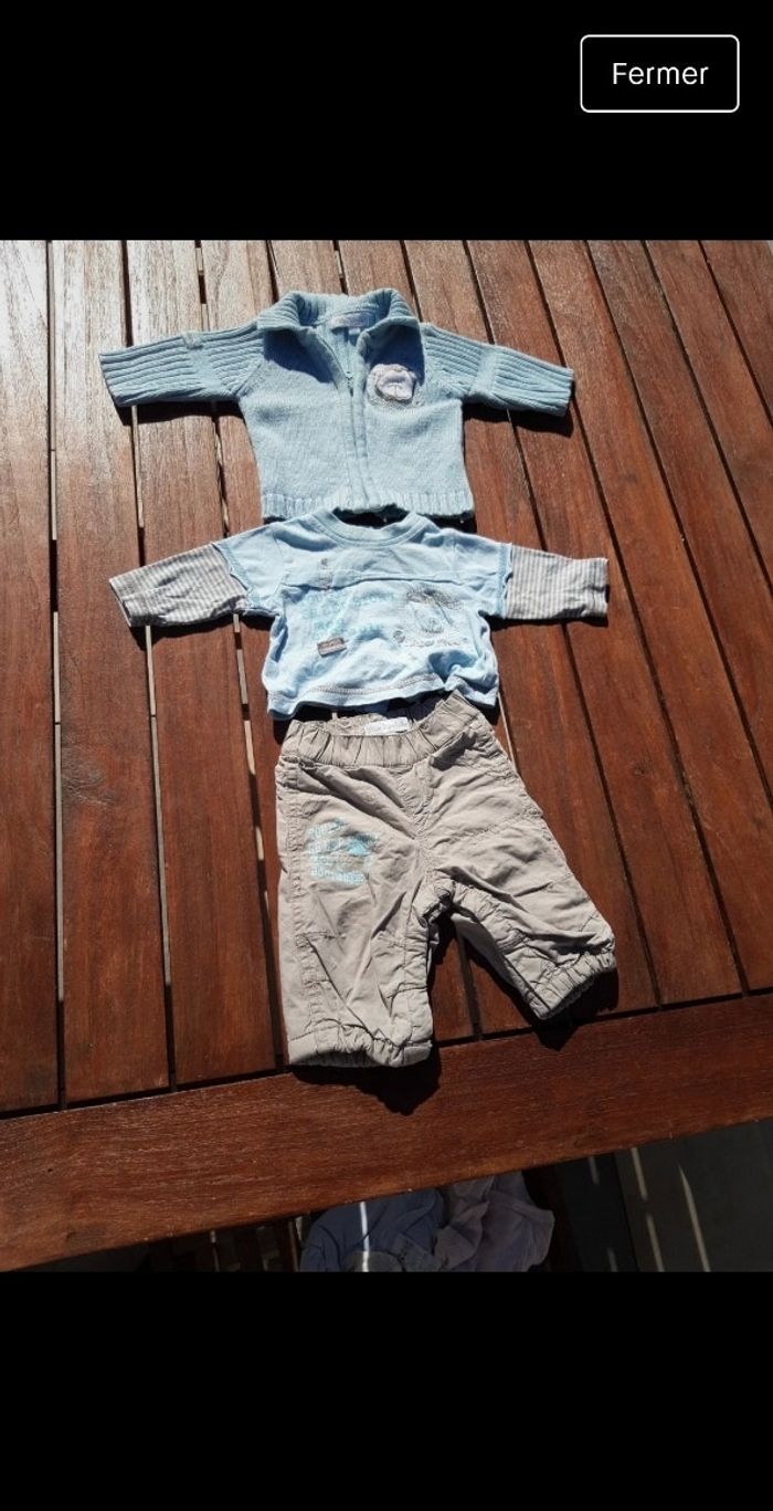 Ensemble naissance, pantalon doublé et gilet avec son tee-shirt assorti