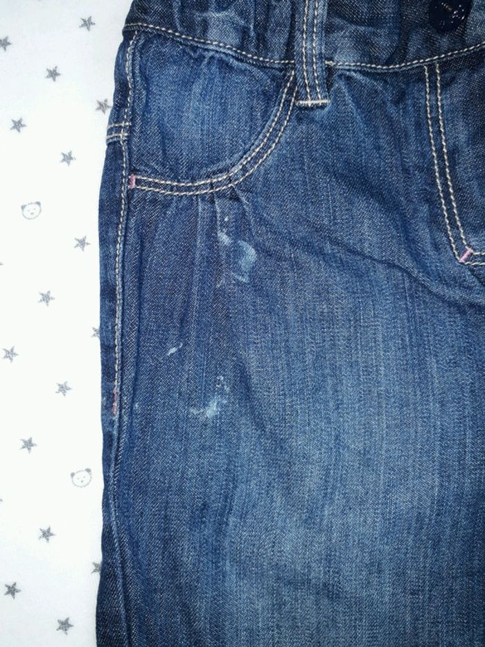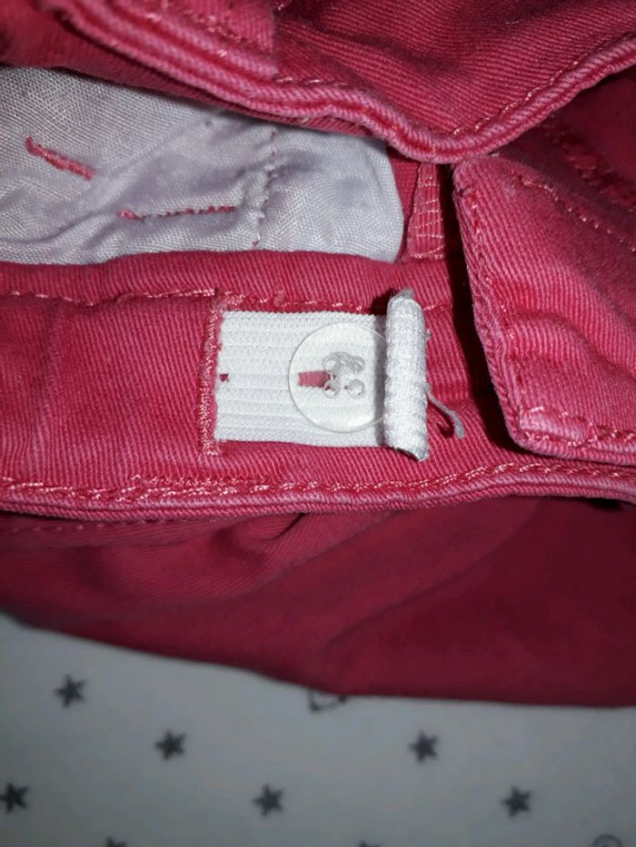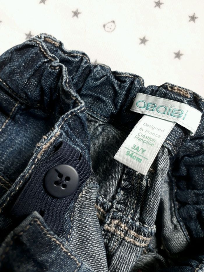 Un Obaibi avec tâches blanches,se sont des tâches de résine d arbre Le rouge (Je ne sais plus la marque étiquette coupée,elle grattait) genou gauche un peu blanchit Les 2 sont réglables au niveau de la taille #clo7721_fille3ans