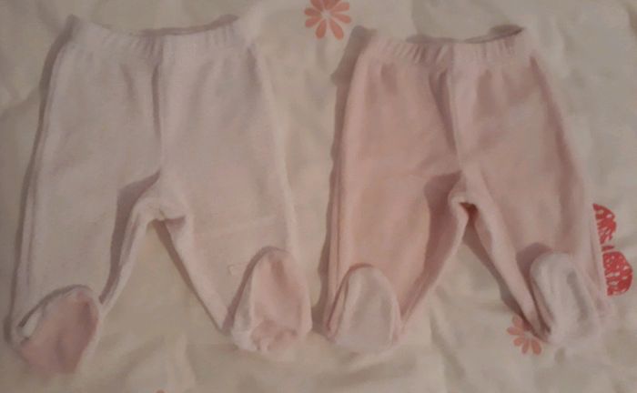 Un rose pâle et un blanc avec petits motifs Neufs juste lavés Tout doux Environ 15 cm de l entrejambe au talon #clo7721_bbfille1mois
