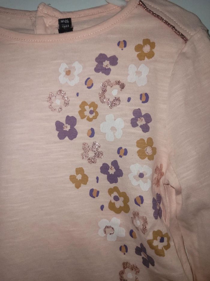 T-shirt sergent major taille 2 ans. Rose impressions dorées.
