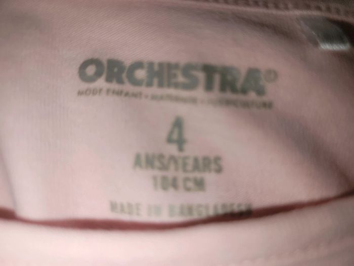 T-shirt orchestra taille 4 ans. Peu porté. Légère trace au dessus de la partie doré.