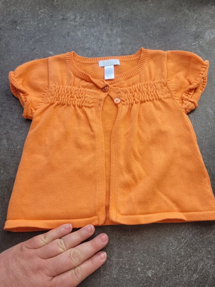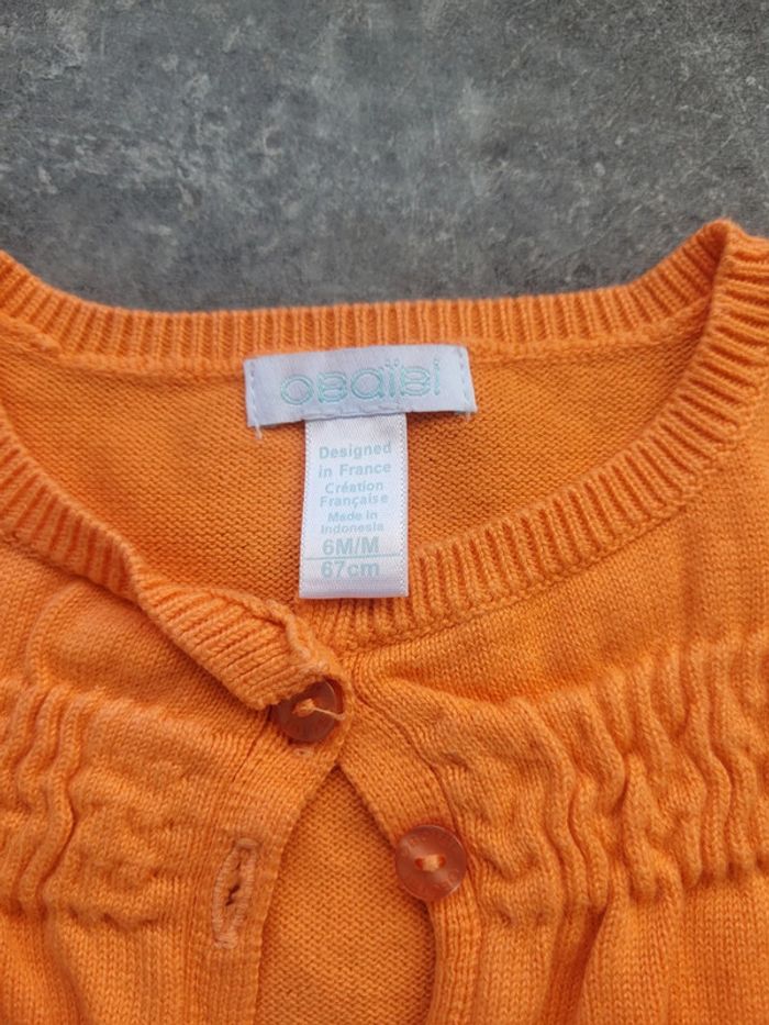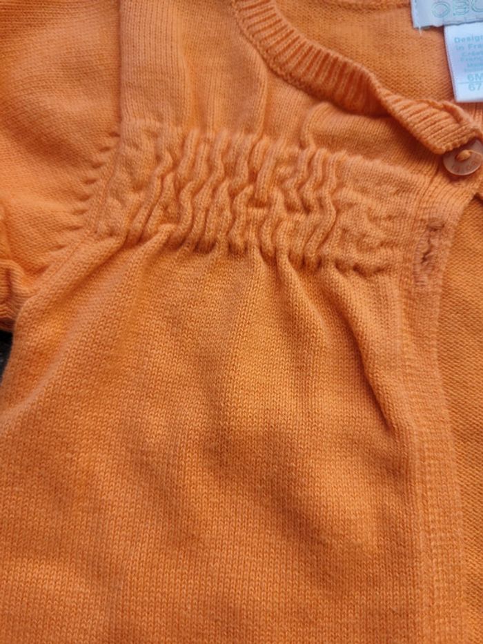 Magnifique petit gilet d'été orange de chez obaibi taille 6 mois. En très bon état
