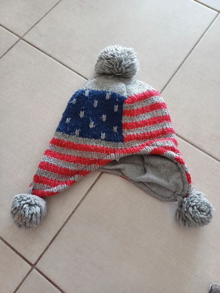Bonnet enfant Drapeau américain sur fond gris. 55cm Très bon état #55cm #bonnethiver #bonnetenfant #bonnetsenfantslexou_77