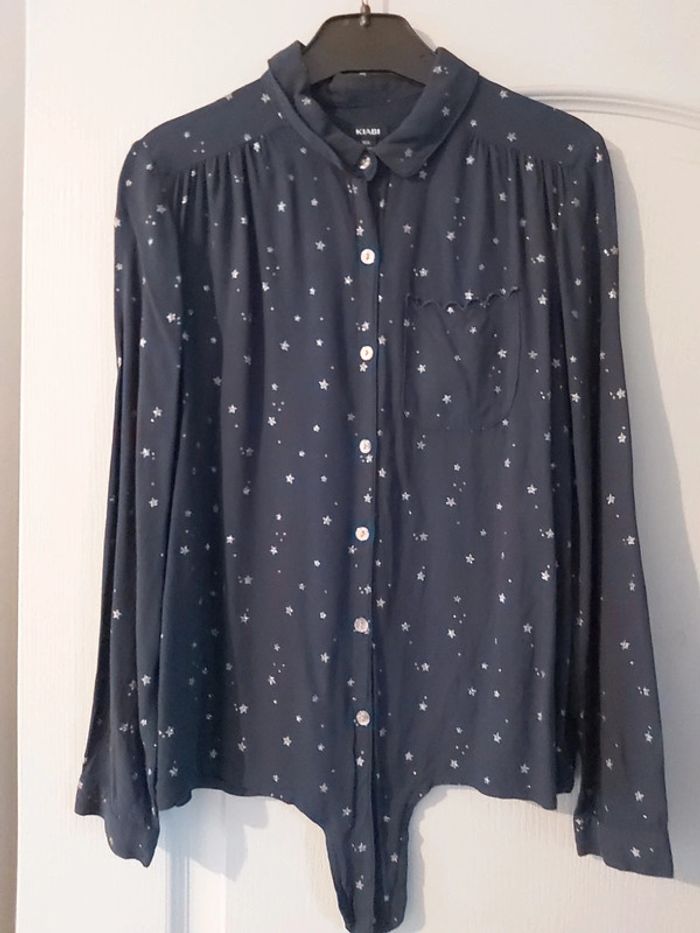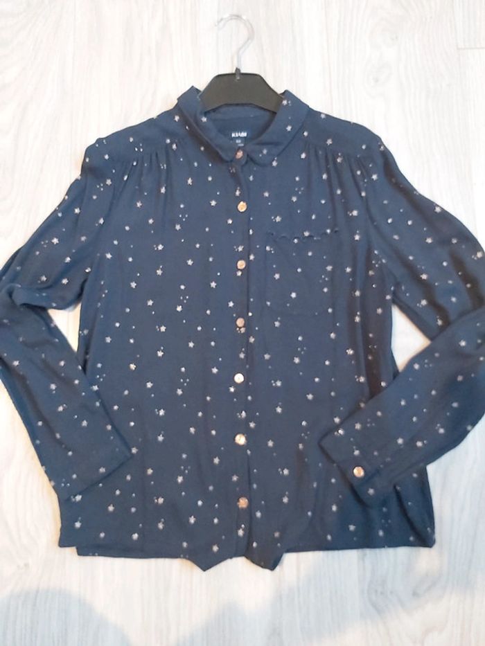 Chemise fluide dans l'esprit blouse. Bleu marine avec petites étoiles 🌟 dorées.