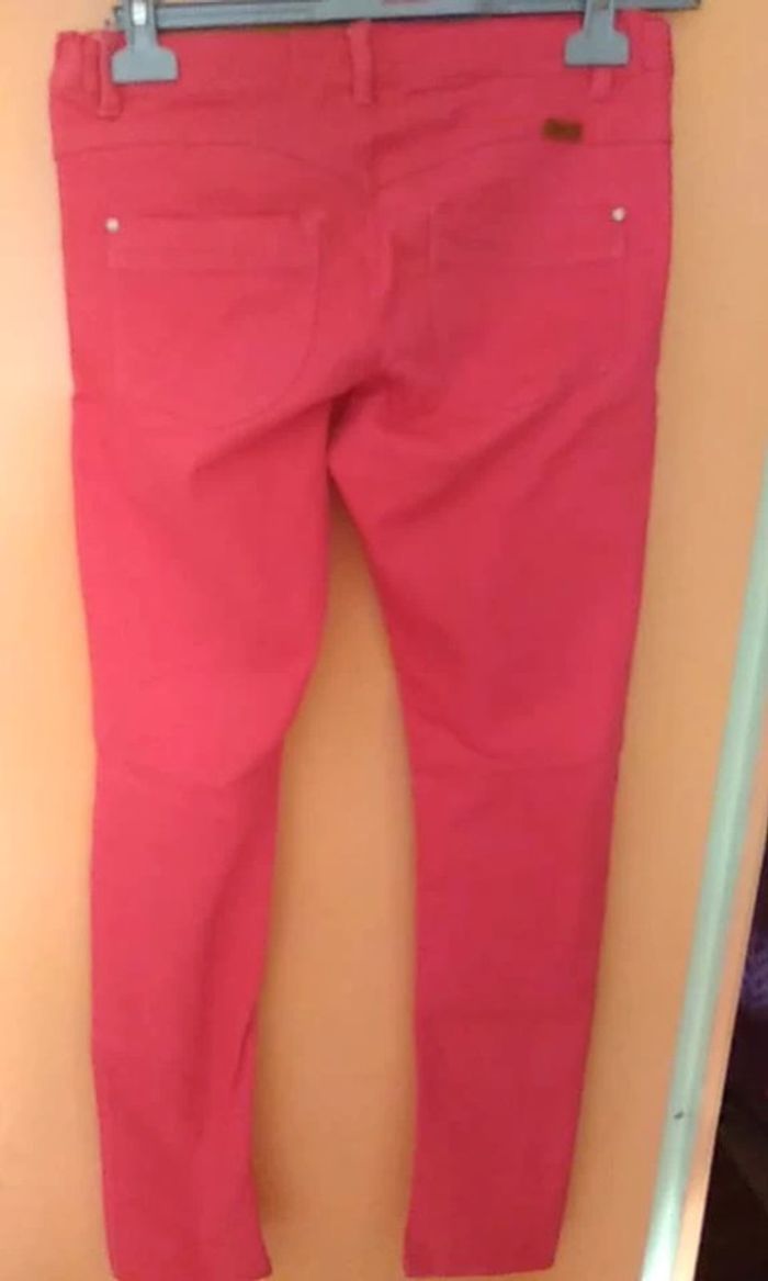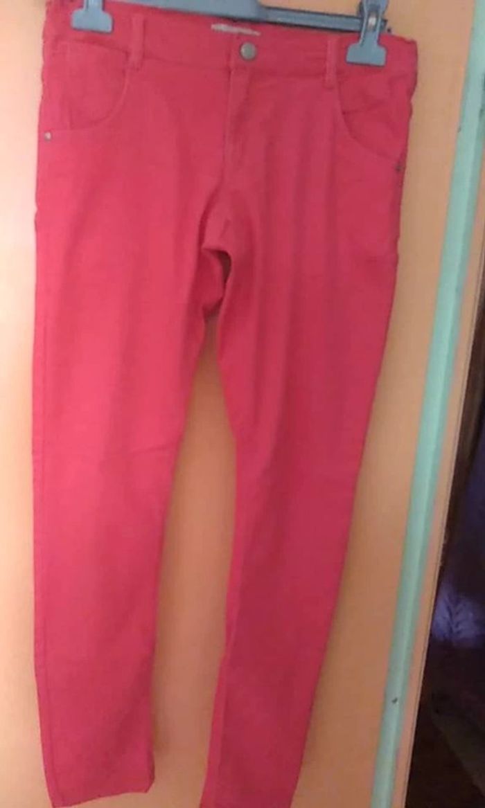 Pantalon rouge orangé (corail) neuf car jamais porté Se ferme par une fermeture Eclair et un bouton Taille réglable 67 % coton, 31 % polyester et 2 % élasthanne 14 ans #pantalonfille14anseilsel0 #articlesneufseilsel0
