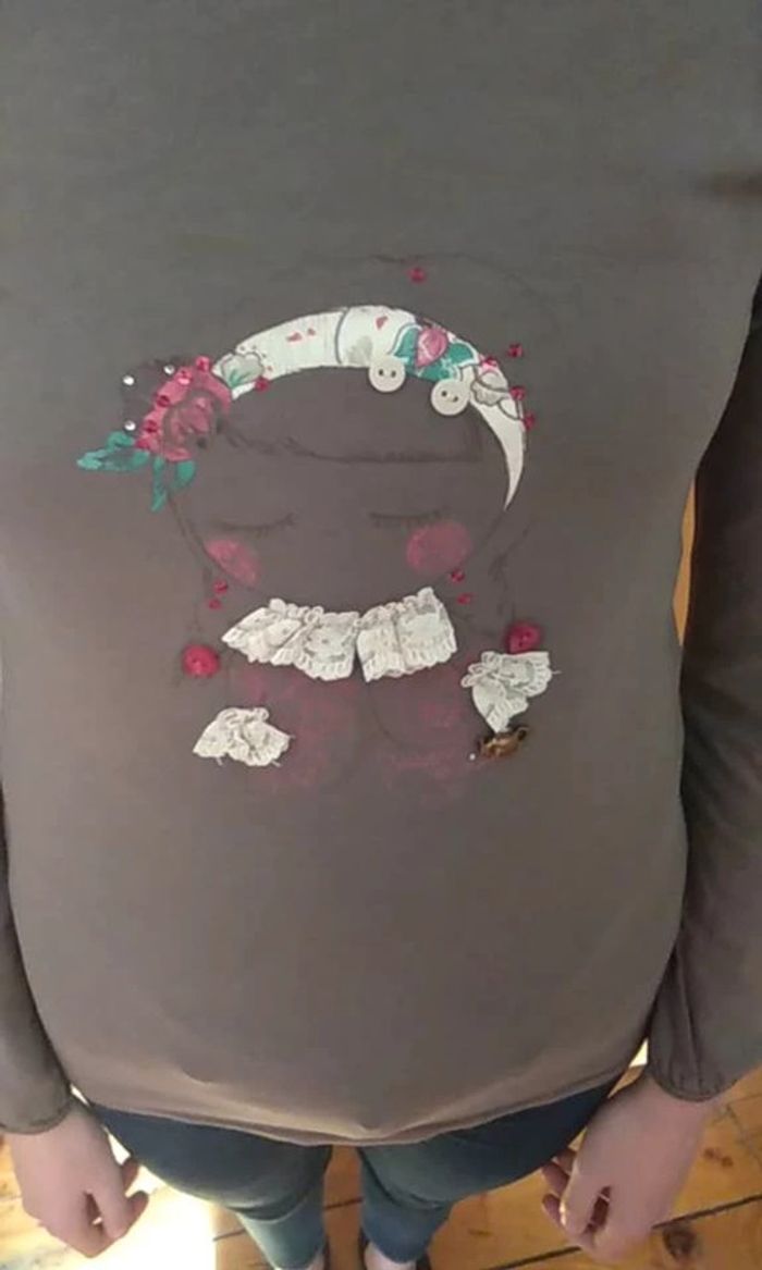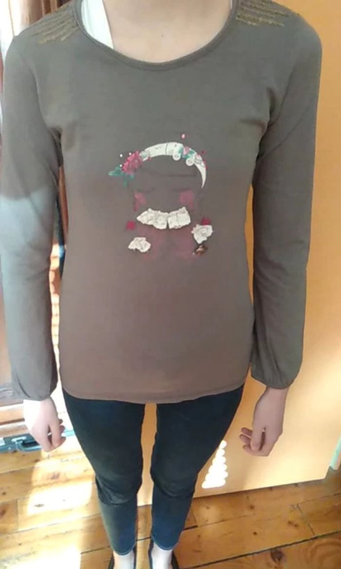 Très joli tee-shirt à manches longues fantaisies sur les épaules et devant Parfait état 95 % coton et 5 % élasthanne 14 ans #hautfille14anseilsel0