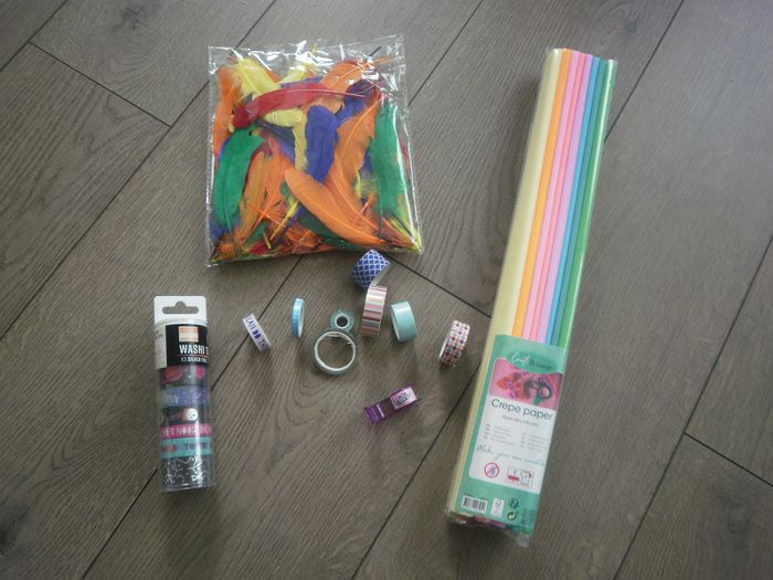 Bonjour, Je vends ce lot de pièces pour Loisirs Créatifs composé de : - 1 paquet de plumes indiennes de différentes couleurs (il en manque 3 dans le paquet). - 1 paquet (jamais ouvert) de 8 morceaux de papier crêpon (dimensions : 45x200cm). - De nombreux rouleaux de ruban adhésif de décoration de différentes dimensions. Prix demandé : 8€ le lot complet.
