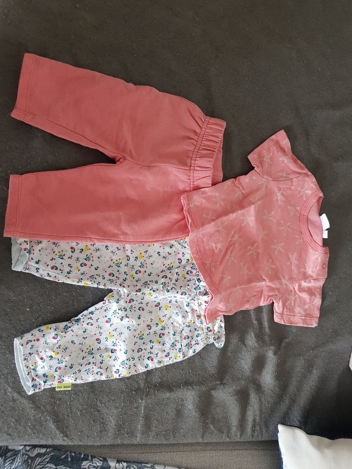 Tee-shirt et 2 pantalons neuf. Taille 1 mois. Marque petit bisou
