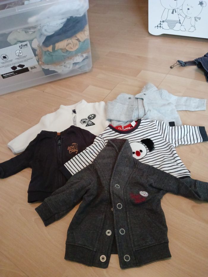 Lot de 4 gilets et 1 pull taille 3 mois - très bon état Marques: Kiabi / Obaibi / Tape a l'oeil