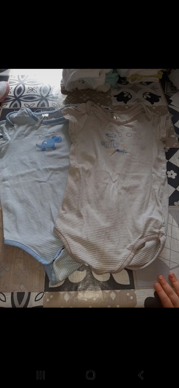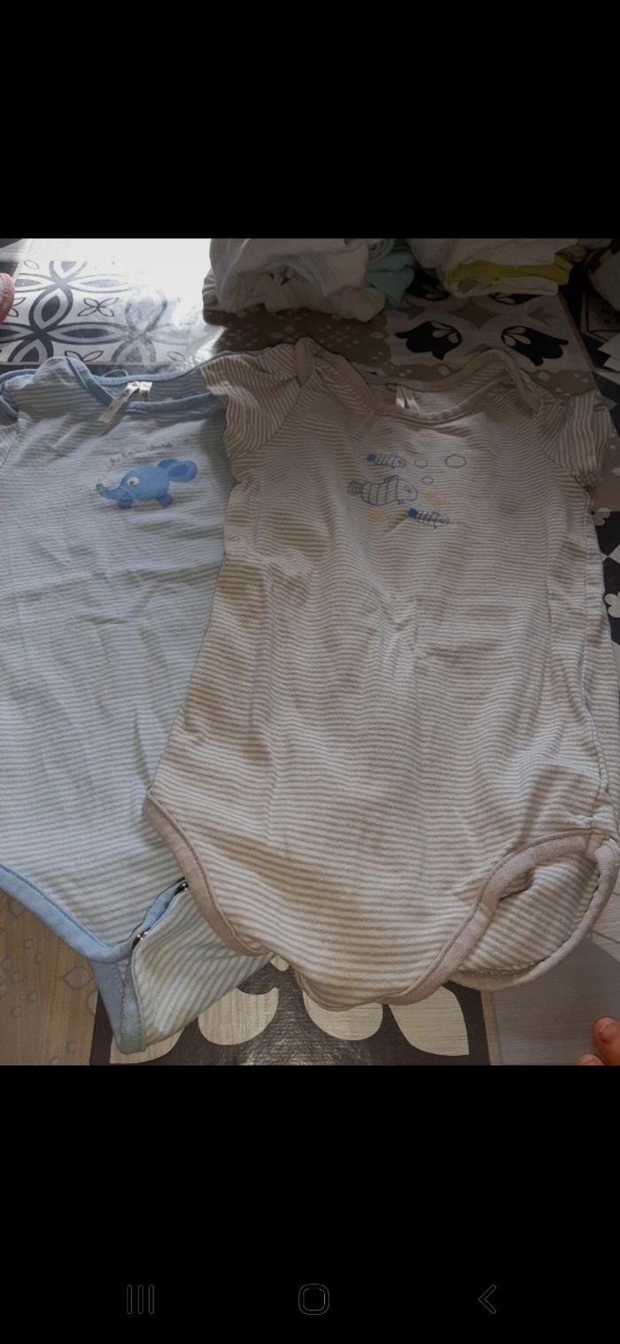 Lot de 2 bodys manches courtes taille 18 mois en bon état. Le gris est légèrement tâcher. Possibilité d'acheter en lots
